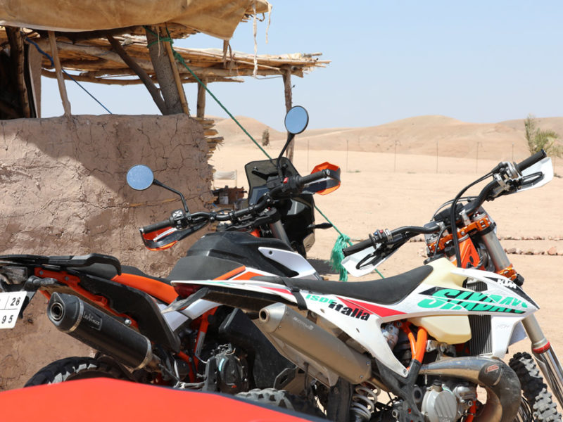 Nous avons une multitude de parcours tous niveaux. Du parcours découverte trail aux parcours Enduro comportant des singles, oueds, franchissement, nous saurons vous faire découvrir les contreforts de l’Atlas et désert entourant la ville Ocre. Nos différents circuits vous permettront de découvrir Le désert d’Agafay, le Lac Lalla Takerkoust, le plateau de KiK, la vallée de l’Ourika, le plateau d’Azegour et pour les plus téméraires de grimper au sommet de L’oukaimedem. Une pause repas est prévu à mi-parcours autour d’un thé et cuisine traditionnelle.